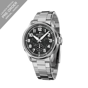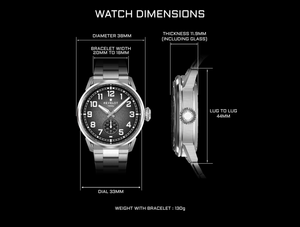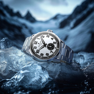 A design that pays tribute to the iconic Dirty Dozen collection of field watches created by twelve different Swiss watchmakers during the final years of World War II. Issued to British servicemen, these watches represent a unique intersection of horology and military history, holding a significant place in both watchmaking and wartime memorabilia.